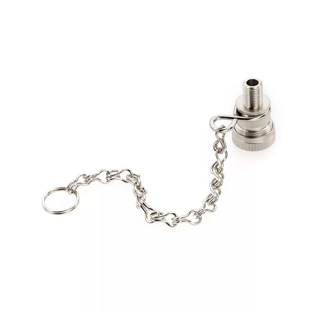 Alligator Verloopnippel.Deze is geschikt om een fiets ventiel op te pompen met personenwagen pompnippel.Deze verloopnippel is voorzien van een ketting...