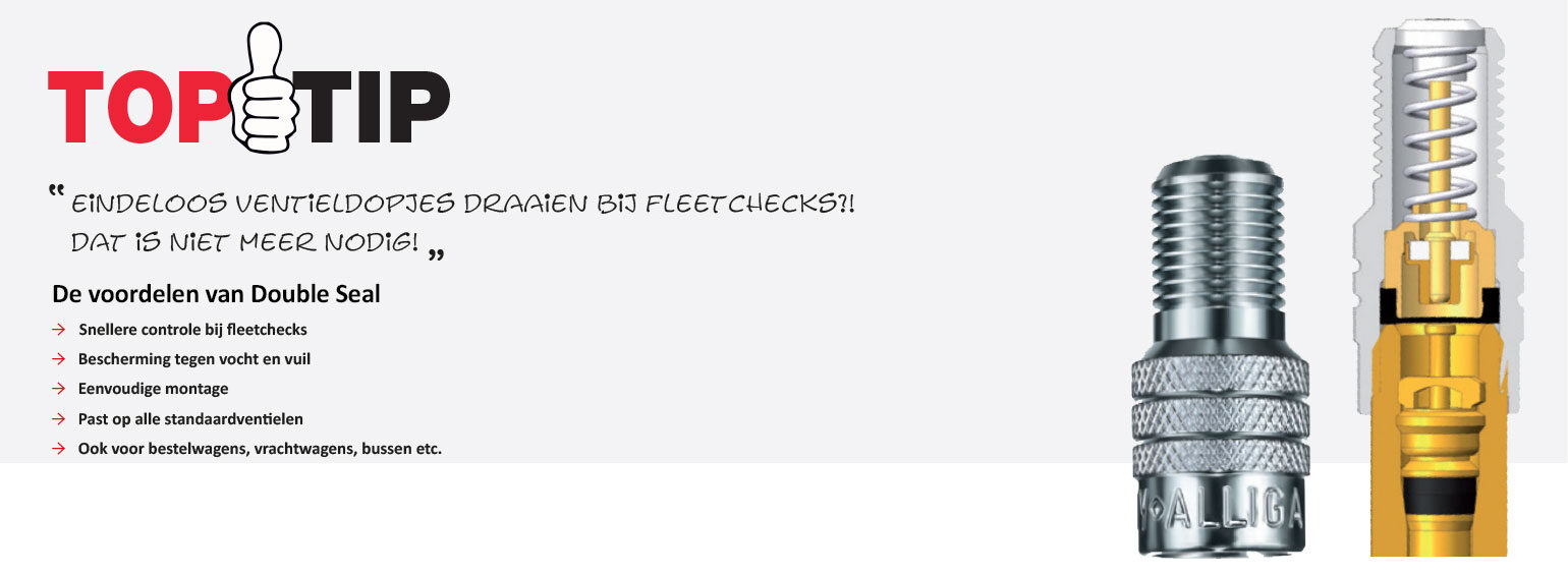Met het (eenmalig) monteren van de Alligator Double Seal ventieldop, behoort het tijdrovende dopjes draaien tot een ver verleden. Onderzoek toonde aan dat een gemiddelde servicebeurt van 20 minuten teruggebracht kan worden tot wel 7 minuten door Double Seal ventieldopjes te gebruiken. Bij het uitvoeren van fleetchecks voor trucks, aanhangwagens, opleggers en bussen, is het meest tijdrovende werk het losdraaien van alle ventieldopjes.