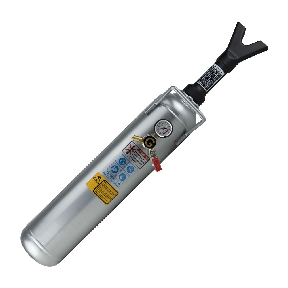 Weegt slechts 5,75kg en kan na gebruik eenvoudig weer gevuld worden via de persluchtaansluiting. Door het compacte ontwerp ook eenvoudig te gebruiken in de servicewagen.