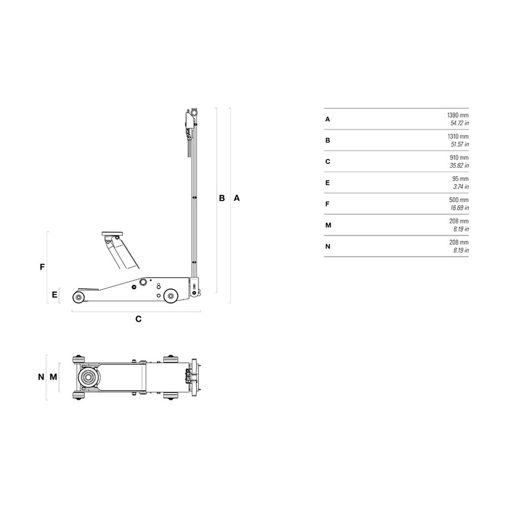 De krik is makkelijk in gebruik en de zuigers bewegen automatisch terug. Ideaal voor truck werkplaatsen, mobiele werkplaatsen, banden werkplaatsen en carrosserie bedrijven.
