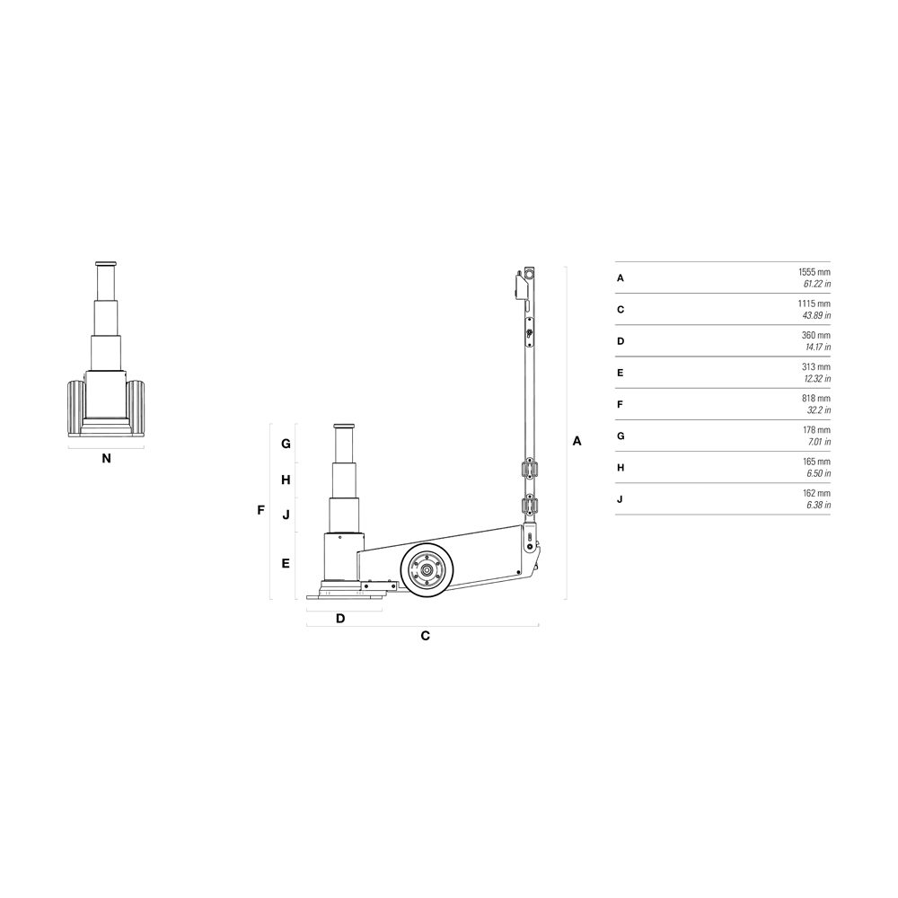Deze krik is speciaal ontworpen om voertuigen vanaf het onderstel op te krikken en is ideaal in situaties waar maximale strijk en capaciteit vereist zijn.