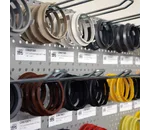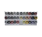 Het wandbord is voorzien van 32 haken en 32 magneetlabels met artikelnummer en benaming met maten van de ringen.