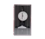 De meter wordt met zijn brede voet op de band geplaatst, zodat de as met het contactpunt aan het uiteinde in het loopvlak dringt. De wijzer geeft direct de juiste waarde aan.