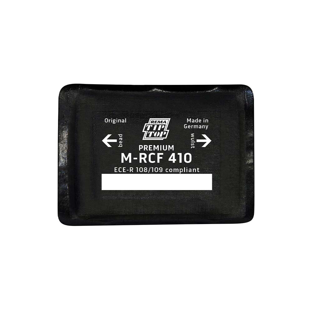 De centreerpleisters van de Rema Tip PREMIUM Line zijn de nieuwe generatie bandreparatiepleisters. De RAD pleister 410 M-RCF PREMIUM Line biedt een duurzame reparatie aan de wang, schouder en het loopvlak van een radiaal band. De verbeterde rubberen hechtlaag bestaat uit twee rubberen componenten en is daardoor bimodaal. Hierdoor zijn de RAD pleisters PREMIUM Line nog sterker, soepeler en beter hechtend. Bij een juiste toepassing biedt deze pleister een zeer duurzame reparatie. In de middelste laag van de pleister zitten speciale rayon koorden verwerkt. Dit vergroot de kracht van de pleister en blijft tegelijkertijd zeer flexibel. Daarom is deze radiaal pleister geschikt voor zowel personenwagen-, truck-, landbouw- als grondverzet banden. Bij de hechtlaag van deze M-RCF PREMIUM Line pleister is geen solutie nodig maar deze wordt verwarmd voor de vulkanisatie in een opwarmbox (5153260). Door de milieuvriendelijke vulkanisatie is deze pleister zeer geschikt voor een agrarische omgeving. Maak bij het kiezen van de juiste maat pleister gebruik van de schadetabel, deze is te vinden onder het kopje downloads bovenaan de pagina. Alle Rema Tip Top PREMIUM Line centreerpleisters worden geproduceerd volgens de Europese veiligheidsrichtlijnen (ECE-R 108/109).