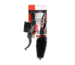 Simson Onderhoudsborstel set om grondig kettingen, kettingbladen, derailleurs en remmen schoon te maken. De set bestaat uit twee verschillende borstels. Reinig met de multiborstel eenvoudig de fietsketting en het versnellingssysteem. Haal met de gekartelde kunststof kant het grove vuil tussen de tandwielen, waarna met de borstel het losgemaakte vuil kan worden verwijdert.